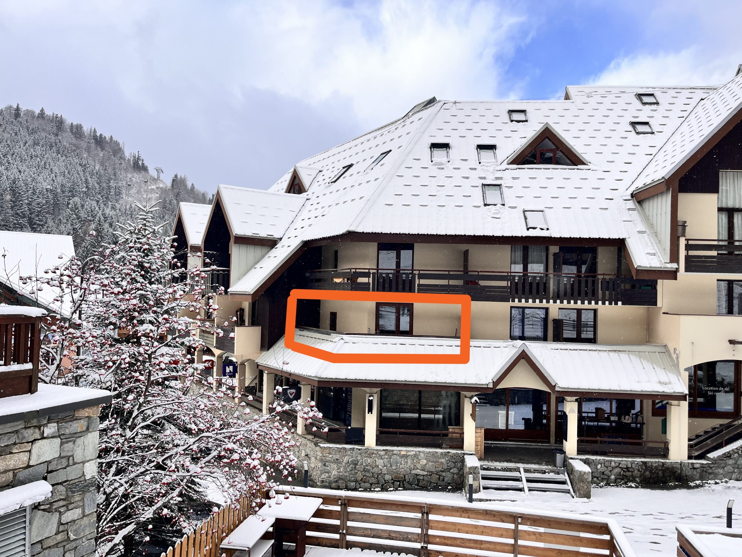 Spacious balcony with a beautiful sunny view of the ski slope.